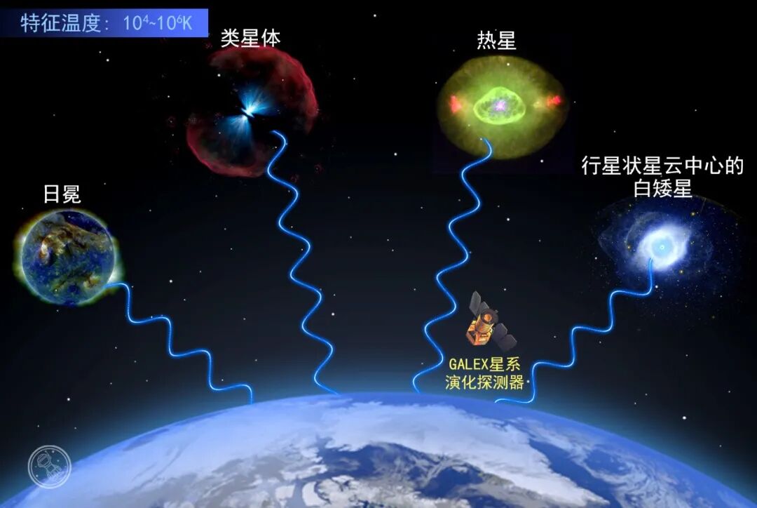 紫外线观测的主要对象是热星,或者说高温恒星。观测温度达到几万到几百万摄氏度的日冕,就是在紫外线和X射线下完成的。紫外线观测有助于我们对太阳大气的理解,它能告诉我们与热的、年轻的恒星有关的构成和温度等信息。研究这一波段的光需要借助高空气球或空间天文台,因为大部分到达地球的紫外线会被大气层阻挡,难以从地面观测。
