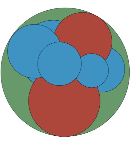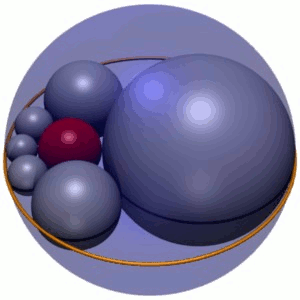 翻译成现代的语言解释就是:2个球互相接触,它们和绿球也互相接触。蓝色的球和相邻的蓝球接触,并和绿球接触,那么一共有多少个蓝球?它们的半径之间有什么关系?