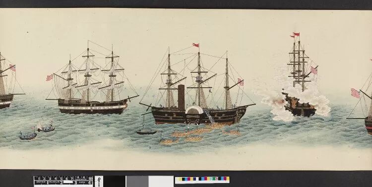佩里第二次出使日本搭乘的黑船。图片来源:British Museum