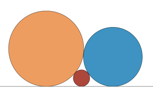 这是1824年群马县的一块算额上的几何问题。若三个圆相切,那么它们的半径之间有什么关系?是不是有中学几何题的既视感?
