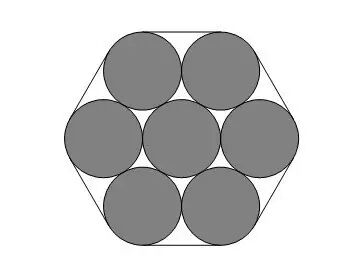 作为热身,假设你要把平面上许多相同的圆打包,要求用尽可能短的曲线将它们紧紧包在一起。对于七个圆,你可以试着包成长条“香肠”: