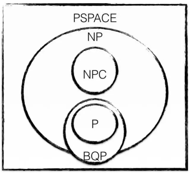 计算机科学家已经证明:PSPACE包含BQP,且BQP包含P。关于BQP和NP这两个类的关系,有一些问题属于NP类,而不属于BQP类,反之亦然,两者互不包含。