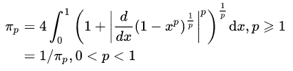 一般 p≥1 才叫p-范数,这样的话圆周率就局限在 [π,4] 范围内