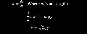 计算的基本思路是「能量守恒」。坠落的珠子把势能变成动能。如果我们把这条弯曲的路径长度记做s,每一段无线小的路径记做ds,得: