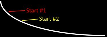 - 还有第三种跳台滑雪式的路径,它会是最快的一个么?走这种路径有个优势,就是在一开始会获得较高的加速度,当加速度达到最大的时候,把这种优势转化为较短的时间滑过后半程的水平位移上。