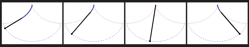 当钟摆摆动时,吊绳就贴上了簧片,簧片的形状就是摆线的渐开线,钟摆因此就沿着完美的摆线运行了。