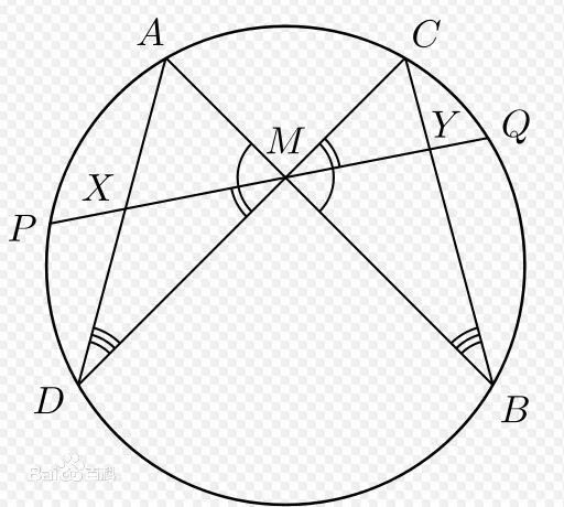 3.蝴蝶定理:设M为圆内弦PQ的中点,过M作弦AB和CD。设AD和BC各相交PQ于点X和Y,则M是XY的中点。(配个图啦啦啦~)
