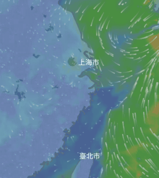 ○ 风的向量场图示:在每一点上,风都有一个特定的方向和大小。 | 图片来源:Windy.com