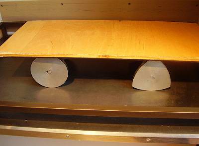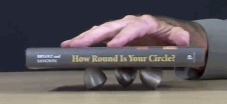 勒洛三角形和它的一干定宽曲线兄弟们都具有许多有趣的特性,其中最重要的当然就是它们的定宽性。使用截面是定宽曲线的滚木来搬运东西,不会发生上下抖动。实际上这样的装置在许多科技馆都能看到,下图就是柏林一家博物馆内的定宽曲线滚木。另外定宽曲线还有一个有趣的性质,就是宽度相等的定宽曲线有相同的周长,所以下图中的圆形滚木转过一周的时候,旁边的勒洛三角形滚木也恰好转过一周。