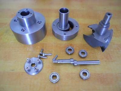 方孔钻头分解图,中间的齿轮组是使钻头轴转动的机构