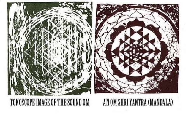 强大治愈的可能性在声音的科学中被发现。Sri Yantra(吉祥的意思)的照片,一个由声音创造的曼陀罗(mandala),即据说被一个瑜珈行者,在深切的冥想中想像出来的印度冥想图,就是世界上最古老的声音的画像。