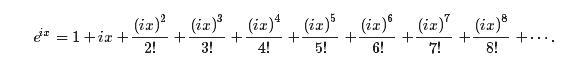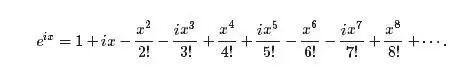 现在,让我们将泰勒级数中的变量x换成ix,得到