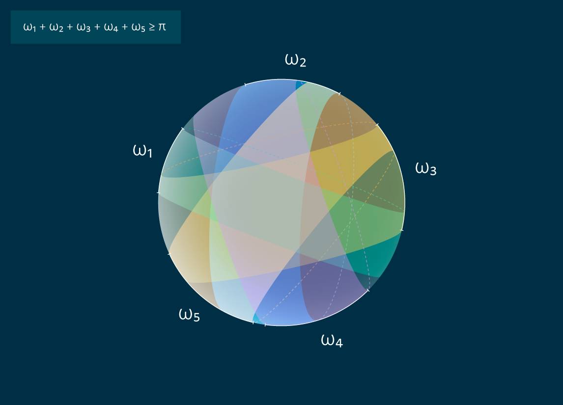 Zilin Jiang 和Alexandr Polyanskii 处理的问题有些不同,它涉及到的是关于用具有特殊构造的区域来覆盖一个单位球体。具体而言,每个区域都是球体与一个特定的三维板条的交叉,其中板条是包含在相对于球体的中心对称的两个平行平面之间的空间区域。或者可以不用木板,而在测地线的度量空间里定义区域:一个在单位球表面的宽度为ω的区域,是距离大圆(球面上半径等于球体半径的圆弧)不超过±ω/2的点的集合,测量点与点间距离的是连接它们的最短弧。数学家必须找到能覆盖单位球体上这些区域的最小宽度的和。因此,问题不同于之前解决的宽度测量的问题:它被定义为弧的长度,而不是平行线或面之间的欧几里德距离。