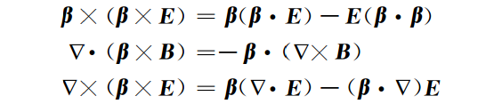 [size=1em]但是,正如上文所述,介质电磁学理论只是真空电磁学的应用。本构关系也只是大量微观带电粒子的宏观效应。实际上,真正的电磁学变量只有电场强度E和磁感应强度B,即Fμ ν。因此,原则上,我们应该可以把本构关系约掉,进而去掉D和H,将方程组减少到真空麦克斯韦方程组一样的4个方程,两个描述电场,两个描述磁场。也就是说可以把介质的运动效应从本构关系上转移到麦克斯韦方程组上,而且也应该是形式协变的。事实上,的确可以做到这一点,下面就来实现这一点。首先将本构关系式(91)、(92)代入麦克斯韦方程组中,应用矢量公式 [size=1em]方程(94)、(95)的前两个方程可以被化简为