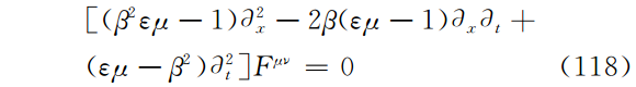 [size=1em]在张量的表述下,麦克斯韦方程组变为 将Aμ作为基本变量,上式第一个方程是欧拉-拉格朗日运动方程的直接结果;而第二个方程是一个恒等式,方程右边等于零意味着不存在磁荷。这两个方程的分量形式就是麦克斯韦方程组,此即宏观电磁场分析力学形式。既然真空中的麦克斯韦方程组可以写为满足狭义相对论要求的四维形式,我们不禁要问,介质存在时的麦克斯韦方程组是否也是一个狭义相对论理论?此时,由于电磁场作用下介质微观结构改变,电磁理论变得复杂多了,下面我们就来专门进行讨论。