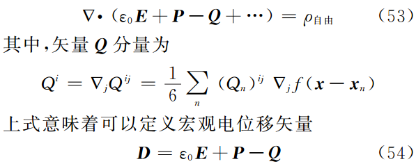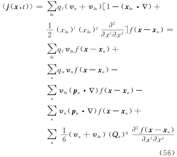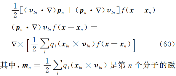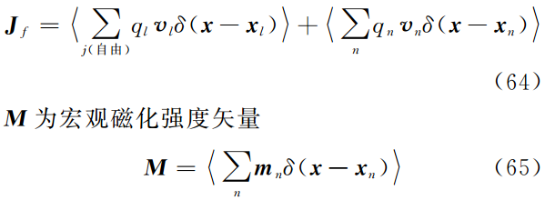 [size=1em]进行空间平均计算前,最好通过定义坐标系将物理图像阐释清楚。如图1令xn为坐标原点O指向第n个分子质心的位置矢量,xl为O点指向第l个带电粒子ql的位置矢量。这些带电粒子包括传导电流的自由电子与分子中形成多极矩的电子和核子。xln为第n个分子中心指向分子中第l个电子或核子的位置矢量 [size=1em]对时间求导有 [size=1em]其中 l是电荷的速度,它等于分子速度n与束缚电荷相对分子的速度ln的矢量相加。注意此处速度叠加也是非相对论性的。分子电荷为[size=1em]它是权函数的零阶近似,代表着将分子看成点电荷的情况。分子偶极矩定义为 [size=1em]这与通常教科书中定义的偶极矩p=qd是一致的,d指的是两个带等量异种电荷q的点电荷分开的一小段微小距离。如果分子带电重心xn相互重合,分子偶极矩将为零。四极矩定义为 [size=1em]作为权函数的二阶近似,电四极矩代表着分子内电荷偏离球对称分布的程度。微观电荷分为传导电流的自由电荷与束缚在分子内部的电子与核子,可以写为 [size=1em]我们对自由电荷与束缚电荷进行空间平均计算,利用权函数的泰勒展开公式,对所有分子n取和即可得到宏观电荷表达式。宏观电荷密度最终的表达式为 [size=1em]其中,ρ自由(x,t)是宏观自由电荷密度 [size=1em]注意,这里应该区分牛顿力学与场论的不同之处。位置矢量xl,xln、速度矢量 l,ln不是场,不随坐标的改变而发生改变。而宏观极化矢量P是一个场,它在不同的空间点取不同的值。原因在于引入的权函数f(x-xn)是坐标的函数,它携带着场的信息。这一点是牛顿力学和场论区别的微妙之处,在以下的推导过程中非常重要,即所有对空间的微分运算都是对于权函数来进行,而此时点电荷的位置、速度矢量相当于一个常数。[size=1em]通过空间平均的方法,可以视极化现象为分子内部由于电荷分布不均匀而产生的多极矩效应,并且最后的结果并不依赖权函数的选择。xln是分子半径的尺度,大约为10-10m,因此电四极矩含有一个10-20m-2的压低因子,读者或许因此认为忽略电四极矩的贡献可以的。但是下面的计算会显示,微观电四极矩贡献了一部分的分子磁矩。因此在这里我们选择将权函数泰勒展开到二阶。将式(49)代入式(41)得到 [size=1em]即它的散度等于介质中自由电荷密度。注意,到目前为止的电位移矢量中没有介质的速度,根据以上公式看不出来介质的运动会不会造成额外的电荷项。 [size=1em]电荷移动时便会形成电流。在电动力学教科书中已经知道,介质中的电流项来自于自由电流密度、极化电流密度与磁化电流密度,而朱公式中出现了额外的电流项: ×(P×),显然这一项是由于介质的运动速度造成的。利用空间平均的方法求出这一电流项就是接下来的任务。为此,假设微观电流密度分为自由电流密度与分子电流密度[size=1em]其中, 是第l个电荷的移动速度。我们的方法依然是将微观电流密度进行空间平均,再对每一个分子求和,结果便是宏观电流密度的表达式。对第n个分子的电流密度空间平均并取和,将权函数的泰勒展开至二阶,结果为很难看出上式方程右边是对应怎样的物理量。下面逐项处理来得到朱公式(33)中的所有项以及其他更多的项。[size=1em]首先极化电流密度 与磁化电流密度×M可以用以下方法得到。方程(56)右边第一项可以写为[size=1em]推导第二步用到了关系 [size=1em]上式第一项正是极化电流密度 而第二项与方程(56)右边第四项将贡献一个分子电流项,即[size=1em]推导第二步用到了关系 [size=1em]这里利用空间平均的方法,找到了朱公式中的电流项 ×(P×)的来源,它可以理解为分子偶极矩由于分子的运动速度n而造成的额外电流项。[size=1em]为了得到极化电流密度的表达式,对泰勒展开式(56)加上下面的式(59),之后再减去式(59) [size=1em]上式第一项与式(56)第三项一并贡献了磁化电流密度JM,即 矩,对所有分子n求和,结果就是我们熟知的磁矩公式M=Is,其中s为电流环的面积。为了看出这一点,注意到是分子内电子与核子形成的微观电流。若它们形成微小的电流环,线元为dl,有公式(59)最后一项与泰勒展开式(56)最后一项合并对n求和后的领头阶为过程与上面推导过程类似,这里就省略了。[size=1em]再减去的项(59)与公式(57)第一项∂P/∂t组成了 [size=1em]这样泰勒展开式(56)等式右边对应的物理量已经 [size=1em]宏观自由电流密度定义为 [size=1em]静止介质中,分子的相对速度 n一般很小,但是当介质运动时,可以忽略介质内分子的速度,而将n近似认同为介质的运动速度。将[size=1em]这说明电偶极矩与电四极矩在介质运动时贡献了一个等效磁矩,它们将以此贡献一个分子电流环。注意这一项并不违反电流守恒定律。极化电荷密度 ,根据电流守恒定律式(5),它对时间的导数将导致极化电流密度,即因为任意矢量场的旋度是无源的[size=1em]任意电流守恒方程都存在一个额外的自由度,电流可以重新定义为 [size=1em] [size=1em]其中A为任意矢量。使用空间平均的方法 [size=1em] 性的要求。如果极化电流Jp在xy平面内向x轴正方向流动,那么电流代表着在xz平面内的闭合电流环,不影响流守恒。[size=1em]以上我们依照空间平均的方法分析极化与磁化的一般规律,发现运动介质的极化与磁化可以认为是由电荷与电流的多极矩造成的。介质运动效应对麦克斯韦方程组贡献了额外的电流项 ×[(P-Q)×]。综合分析,近似至二阶,运动介质中的