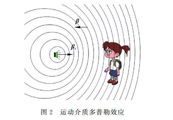 [size=1em]处理完了麦克斯韦方程组的问题,接下来看协变波动方程的处理办法。由式(109)、(110)式再做叉乘运算 ,即可得到运动介质中无源的波动方程为[size=1em]这时,波动方程写成了协变的形式。当β=0时,式(117)回到式(82)。为了验证此波动方程的正确性,计算运动介质中的波速公式。波动方程式(117)是一个二阶偏微分方程,若洛伦兹平动方向为x方向,则方程化简之后形式为 [size=1em]这是一个双曲型方程。令 [size=1em]则它的特征方程为 [size=1em]两族积分曲线为 [size=1em]其中,c1,c2为两个常数,A和B是方程 [size=1em]的两个解。可以验证,作坐标变换 [size=1em]方程(118)即化简为标准型 [size=1em]方程(118)化简为一个非常简单的波动方程。我们可以将电磁场的表达式写为 [size=1em]其中ω=k;C0为任意常数。将u,v的表达式代入,即可得到(t,x)坐标下的电磁场的表达式 可见运动介质中的电磁波波动的相位比真空中的情况复杂很多,当ε=ε0,μ=μ0时,电磁波的表达式就回到真空中较为简单的形式;而当β=0时,电磁波的表达式回到了静止介质中形式。由式(123)得到的波速为[size=1em]其中,e′是运动介质中的光速。此式正是运动介质中波速的相对论叠加形式。至此,我们写出了协变的本构关系,得到了运动介质中关于(E,B)协变的方程组,进而得到了协变的波动方程,并检验了运动介质中的光速公式,是符合狭义相对论的。 [size=1em]最后需要补充说明一下,介质运动对电磁波多普勒效应的影响,因为这是狭义相对论创立之前很多物理学家关注的问题。为了简化,只讨论一维运动。图2是多普勒效应的示意图,由于波源(速度为vS,发射频率为fS)和接收者(速度为vR,接收频率为fR)相对介质运动而造成了接收者接收到的波频率改变的现象。在牛顿力学中的频移规律为 其中u是介质(静止)中波速。注意在牛顿力学中,不必关注介质运动效应,因为绝对时空观,存在绝对时间,把相关速度都转换到介质静止参考系即可。但是在狭义相对论中,情况就不同了。首先必须选择接收者静止βR=0(自然单位制)参考系,因为换参考系计算的频率是没有实际意义的。真空中波源运动时,由于相对论时间膨胀效应,频移公式应该修改为 时,只需要把上式真空光速换为介质中的光速e即可,