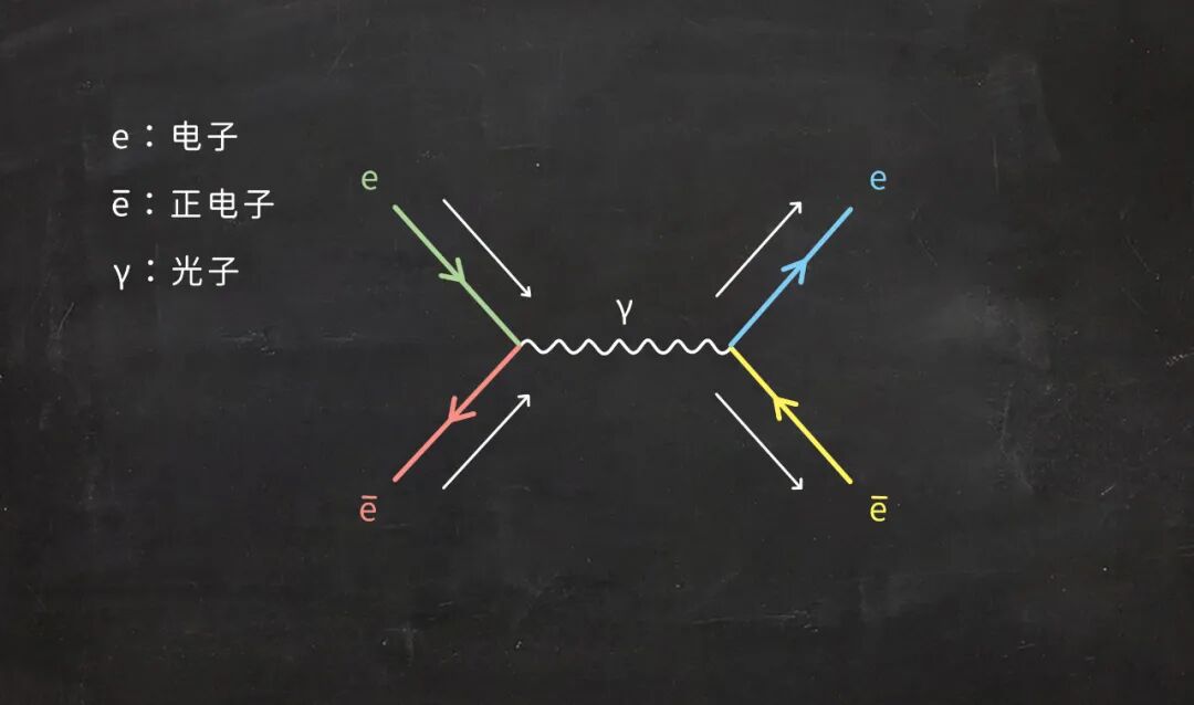 这张费曼图看起来就像一个电子与一个正电子碰撞,转变成一个光子,然后再转变成一个电子和一个正电子。