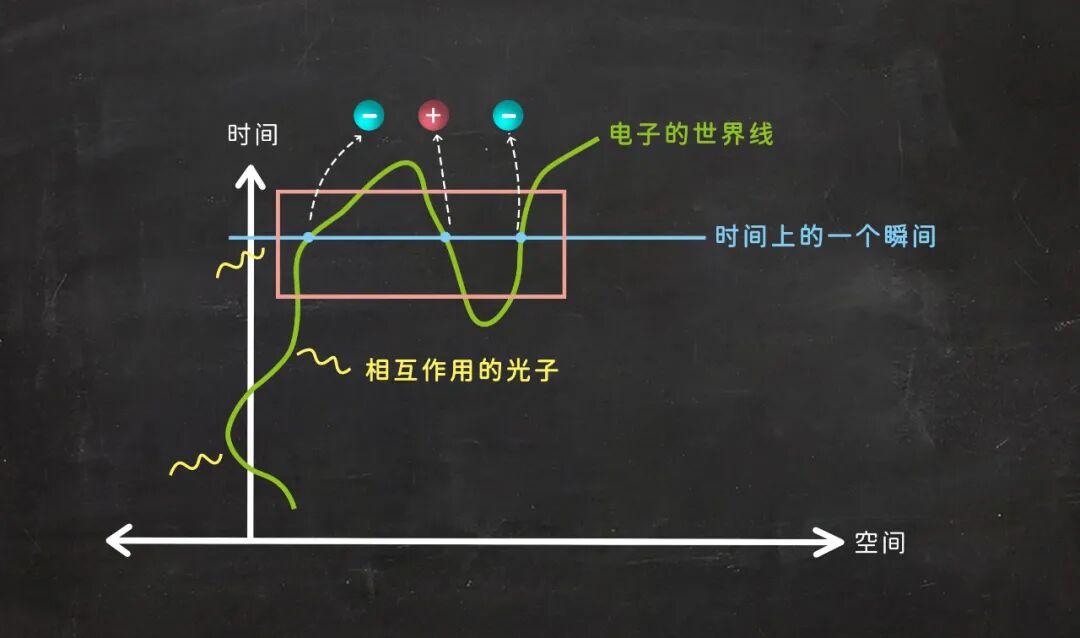 我当然知道,至少在宇宙中我们生活的这个角落里,电子比正电子要多得多。但我仍然觉得,想到时空中的轨迹可以在任何方向上不受约束地前进、后退、向上、向下、向左或者向右,这着实令人兴奋。