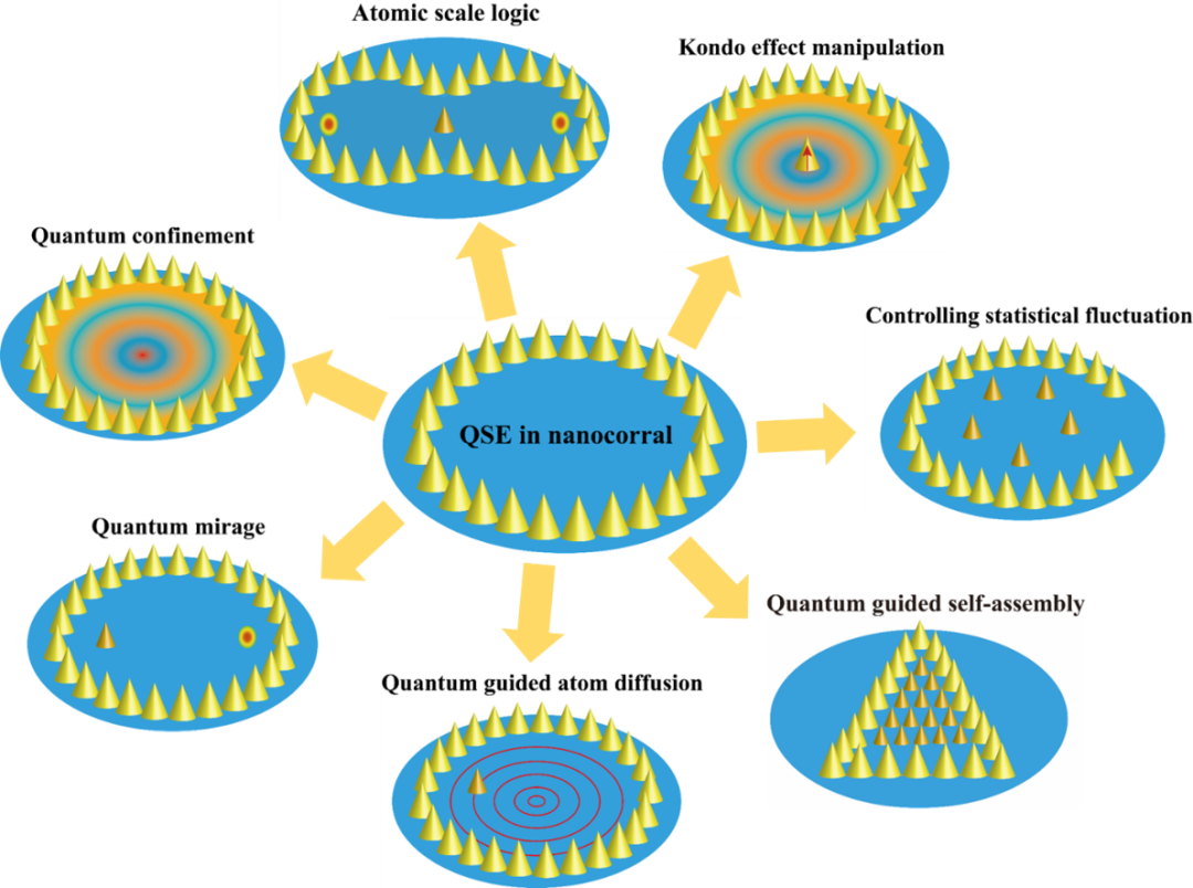 图4. 纳米量子围栏中量子尺寸效应示意图及关联研究示意图 [1]。