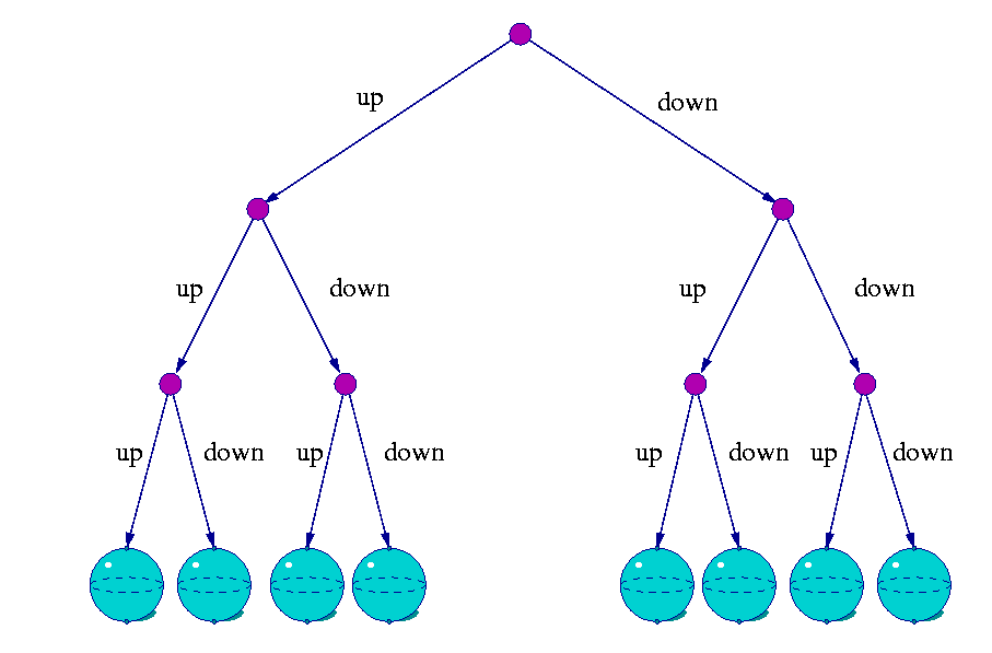 多世界解释接着说,当测量发生时,宇宙发生分裂,出现多个平行的宇宙。在每一个新宇宙中,其中一个状态成为新的真实位置。这些宇宙接着继续分裂,每次测量都会伴随着分裂。