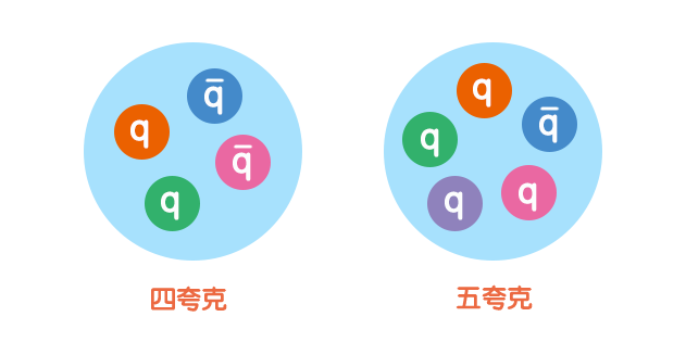将时间快进到2003年。那一年,日本KEK实验室的科学家发现了一种名为X(3872)的新介子,这种新介子表现出了完全不同于普通介子的“奇异”特性。在接下来的几年中,新的奇异粒子被相继发现,物理学家开始意识到,许多这些奇异粒子只能用它们是由4个夸克构成的四夸克粒子来解释。终于在2015年,CERN的LHCb实验确认发现了第一个由5个夸克组成的五夸克粒子。