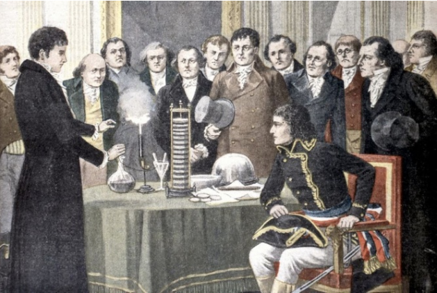 实验中,他把金属银条和金属锌条浸入强酸溶液中时,发现在两个金属条之间竟然产生了稳定而又强劲的电流。于是,他把浸透盐水的绒布或纸片垫在锌片与银片之间,平叠起来。伏特用这种化学方法成功地制成了世界上第一个伏特电推。伏特电堆实际上就是串联的电池组,也是我们现在所用电池的原型。伏特电池的发明,使得科学家可以用比较大的持续电流来进行各种电学研究。伏特电池是一个重要的起步,它带动了后续电气相关研究的蓬勃发展。