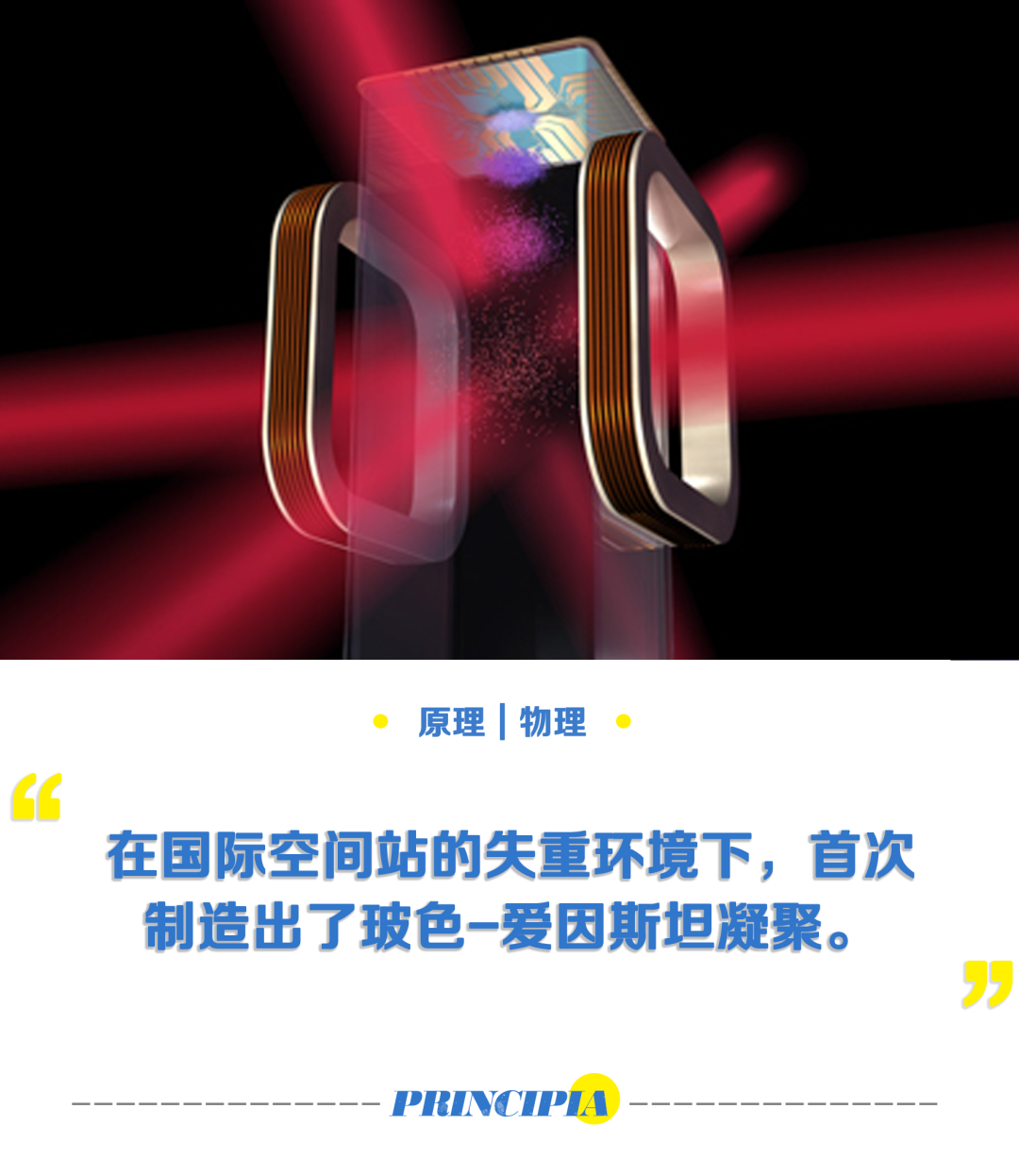 2018年,JPL的物理学家们在国际空间站上搭建了一个“冷原子实验室”,开始在地球轨道上,研究物质的这种奇异状态。他们相信,空间站上的微重力环境,能很大程度上削减重力对能将原子困住的磁场的干扰,从而为研究BEC提供更加理想的条件。