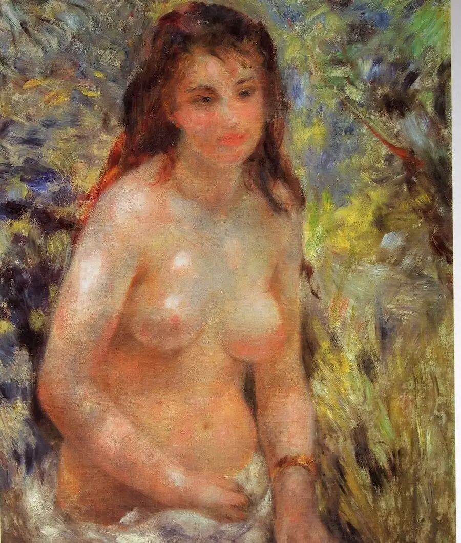 图2是雷诺阿的早期作品《阳光下的裸女》,美女的身体上呈现出一些光亮和色斑,显然是阳光透过茂密的树叶而造成的,体现了印象派画家的观察入微。这引起了当时许多著名评论家拍砖:法国Le Fibaro报的记者Albert Wolf说:“我们必须告诉雷诺阿先生——女人的身体不会像完全腐烂的尸体一样呈现出青一块紫一块的斑点。”还有人讽刺说:“这位模特儿身体上长天花了吧!”