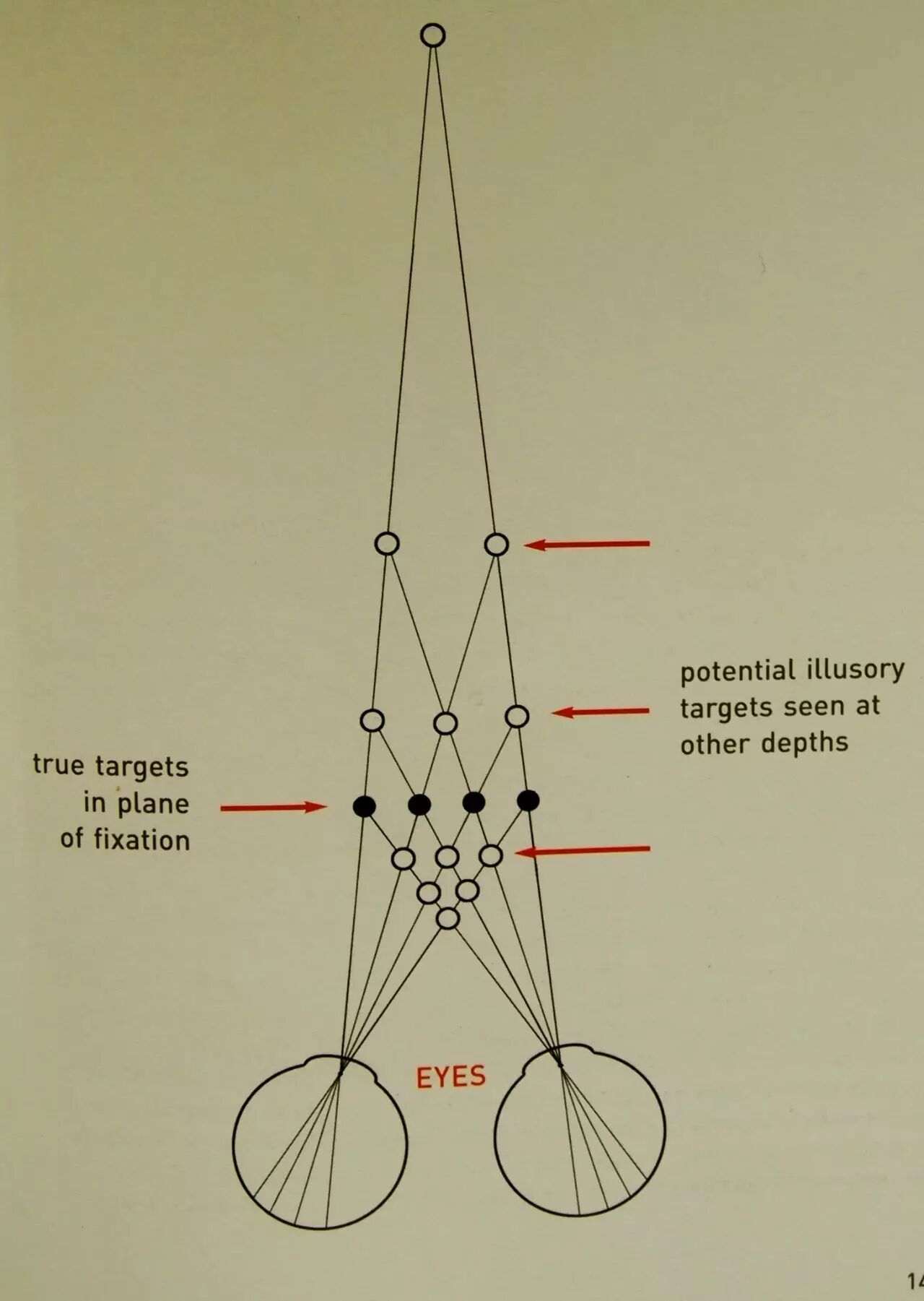 人在观察近处物体的时候,两只眼睛会产生视差,即在两个视网膜上产生了一对稍有差别的像,大脑便会把它们融合起来,生成三维立体的图像,还能确定物体离观者的距离。这个奇妙的现象是在19世纪中叶由物理学家查尔斯·惠特斯通爵士(Sir Charles Wheatstone)率先发现,后来由在贝尔实验室工作的匈牙利裔美籍科学家Bala Julesz(贝拉·朱尔兹)用实验(随机点立体图)证实。