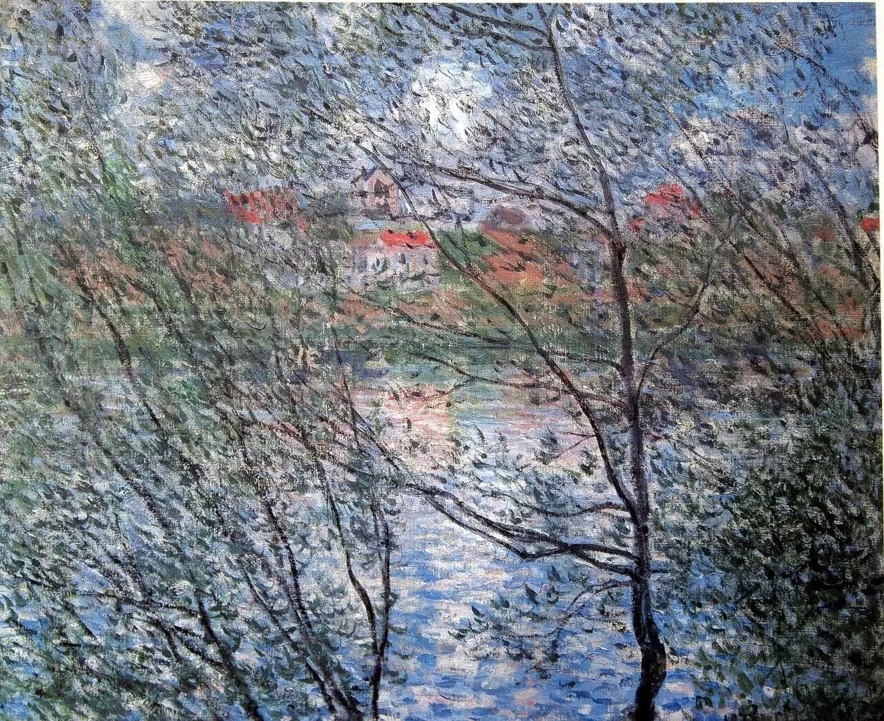 知道了这个道理,我们再来欣赏莫奈的画《透过树丛的春色》。
