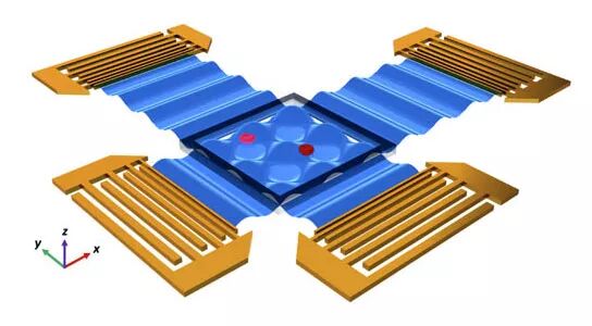 四组叉指电极产生超声波,可以在二维平面上将微纳米颗粒束缚在特定位置。[5]