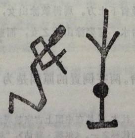 试将文中的“且”与汉代的铜且实物(见图-5)作一比较,不难看出,此字形实绝像人揖拜于“且”(祖的本字),即阳具之形。所以郭沫若之说可定为确论。前引《墨子·明鬼》中,以燕之“祖泽”与宋之“桑林”并论,可知作为社木的“桑”,正如“且”一样,其实也正是阳具的象征。文献记载表明,古代在营建一座邦邑之前,必先建社(《仪礼》郑玄注:“太祝建邦国,先告后土,用牲币。”)。社中必种植社树,这社树叫“社丛”?。“邦”字在甲骨文中有两种构形(见图-6)。