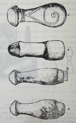 这里还不妨指出,在华夏先民的原始宗教信仰中,崇拜生殖神的观念不仅见诸文献记载,而且有大量的实物可作证明。在新石器时代的许多文化遗址中,都曾出土过作为宗教象征的男性生殖器模型,如:
