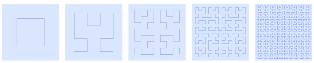 1890年,朱塞佩·皮亚诺(Giuseppe Peano)发现,1维曲线可以被紧凑且连续地“折叠”起来,并填满2维正方形内的每一个点。不过,他构造的曲线会与自身相交无穷多次。如果再用曼哈顿作类比的话,这就像有一部分建筑有多个地址。