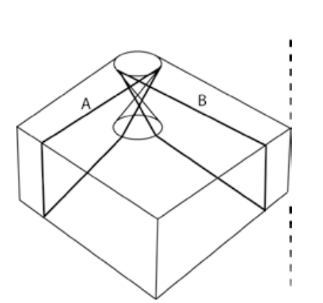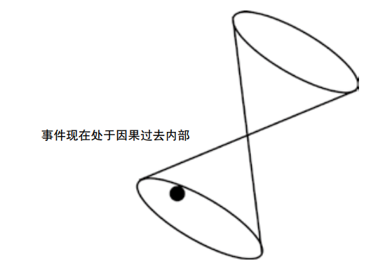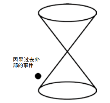 图2 面朝下的光锥描绘了因果过去。因果过去以外的事件,不会影响那个夹点(即在那个位置的当前时刻)