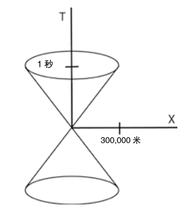 图1 光锥。对轴进行校准,使光速以 45 度线表示