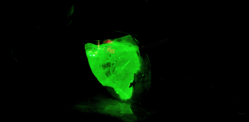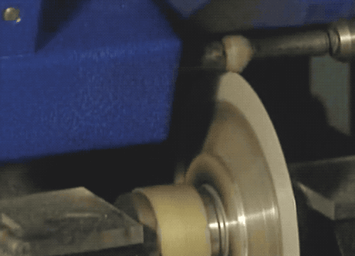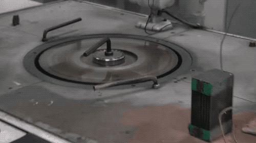 当然激光并不是只走一次,原石就一分为二了...需要在同一个地方多次的走刀。我们换个角度看一下,为了更好地分离,也能看到钻石本身也是在做圆周运动旋转的。