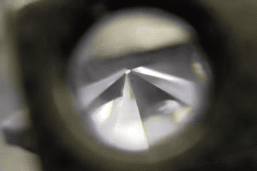 在开始打磨刻面之前,要先认识一下这个自带水平仪的钻石夹具,只要有一个面的角度没达到设计预期,就算是失败了。而一颗明亮型的钻石有 57 或是 58 个面(把亭部的底下尖角也磨出一个面来),所以任务真的很艰巨...