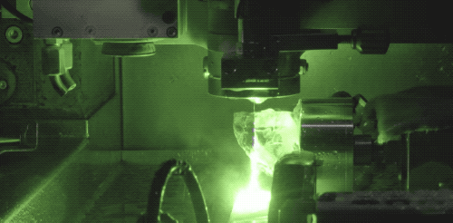 然后是在过去常见的锯切法,锯盘的边缘是被附着了金刚石粉的,这样才能达到比要锯切的钻石更高的硬度去分切。至于你说金刚石粉哪里来?一开始确实是天然的钻石颗粒,等到了 1955 年能通过高温高压的方法制成极其细小的人造金刚石颗粒后,就逐渐替代了天然的作工业用途,毕竟便宜了不是一点半点。