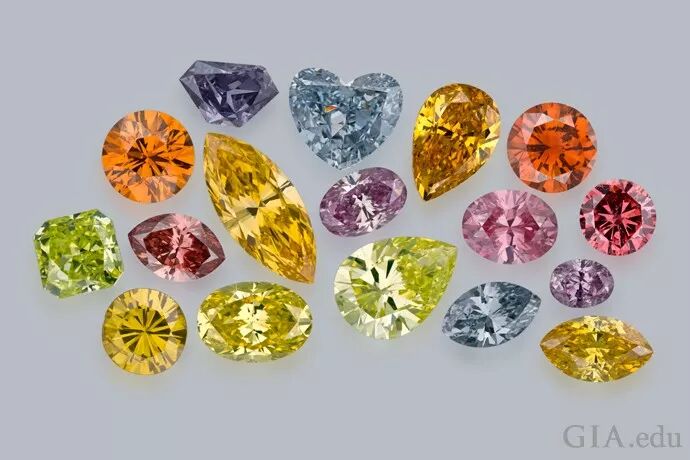 至于彩钻的话,如果钻石混进了硼(B)元素,就会呈淡蓝色,这就是「蓝钻」;如果是钻石的晶格有位移,就会变成「粉钻」;还有的钻石受了长期辐射后,会产生其他颜色变异,比如绿色啥的。物以稀为贵,颜色越罕见,就越贵得离谱。