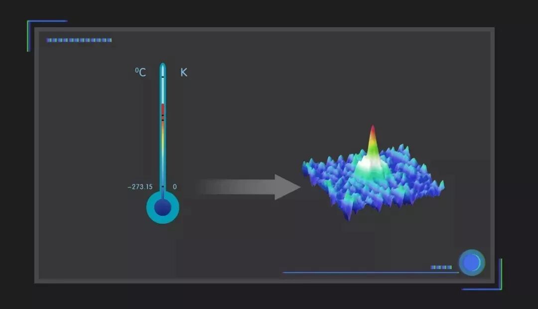 将氦原子等物质冷却到接近绝对零度时,分子运动几乎完全停止。由于几乎没有动能从一个原子转移到另一个原子,因此原子开始聚集成一个单一的量子实体。单个原子会失去它们的特性,成为“超级原子”的一部分。在适当的条件下, 即使光子也可形成玻色-爱因斯坦凝聚。