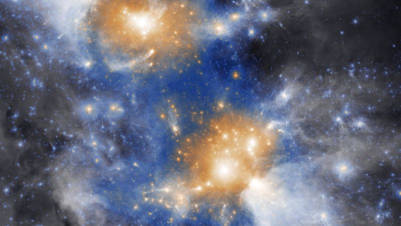 ○ 由Illustris TNG模型产生的星系团。| 图片来源:TNG Collaboration