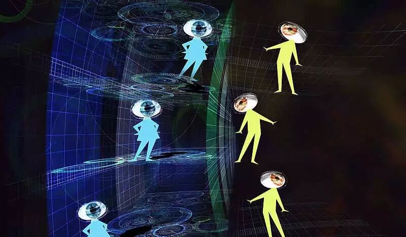 ○ 两个虚拟的观测者将时空和量子物理结合在了一起。| 图片来源:Quantum Information/Harald Ritsch/ÖAW