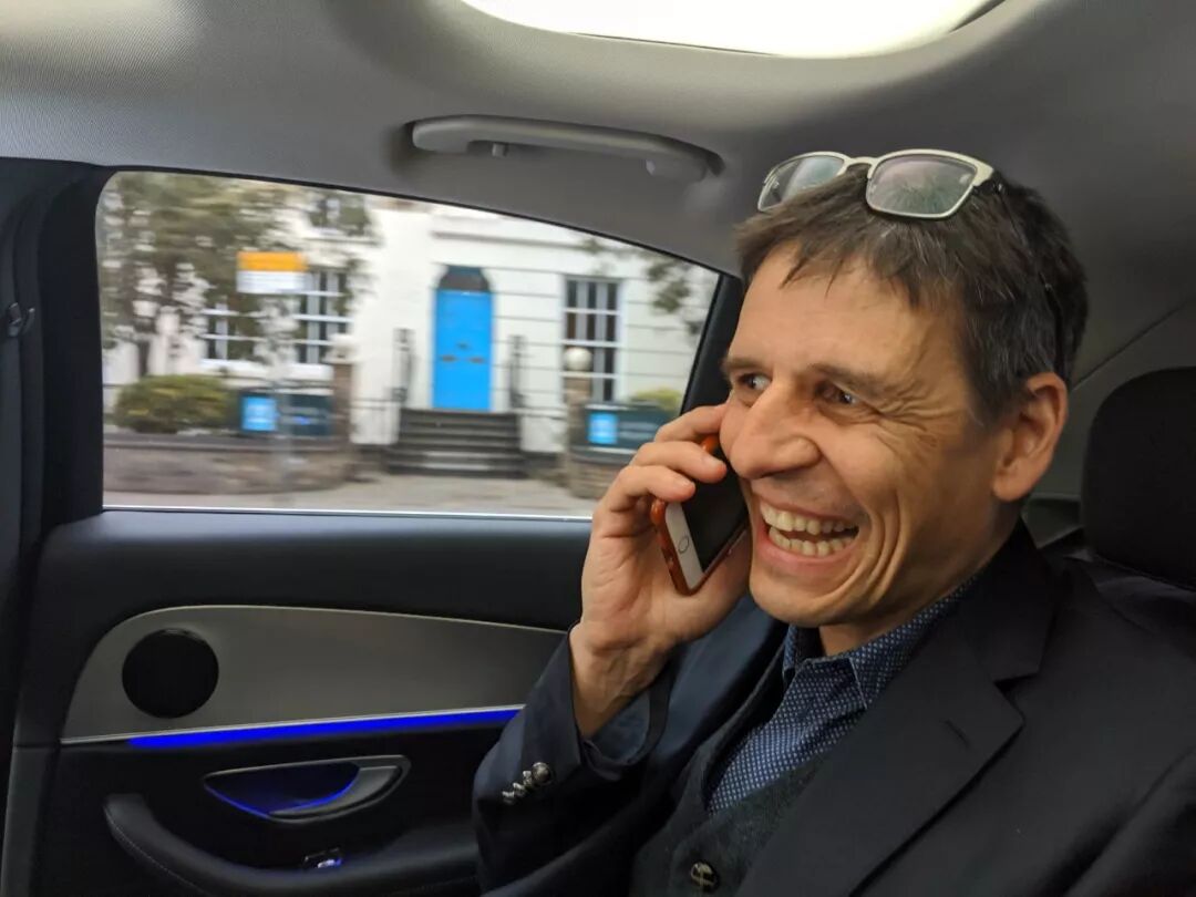 米歇尔·马约尔在西班牙巡回演讲时,听到了他得诺贝尔物理学奖的消息。