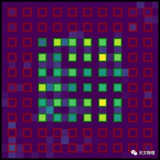 (图示)利用激光捕捉技术,研究人员创建了一个10×10的孤独原子网格(彩色方块),只有几个空点(红色方块)。图片:Brown et al. 2019