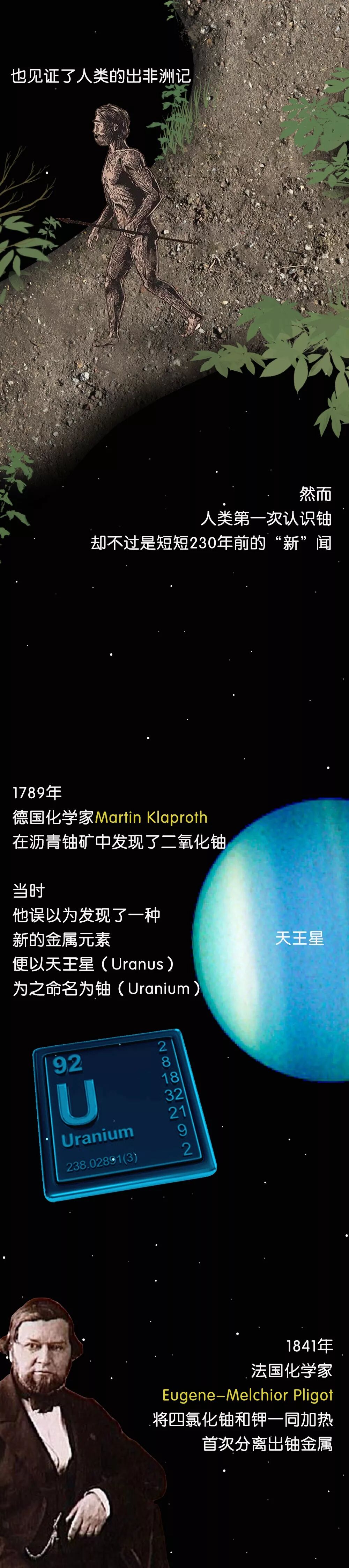 二百多年前,当德国化学家Martin Heinrich Klaprot天王星(Uranus)之名,为其新“发现”的一种元素赋名的时候,他也许未曾想到:冥冥之中,这个古希腊神话中第一代天神的名字,的确为这种神奇的元素带来了颇具传奇的色彩。一个多世纪后,这种元素不仅引领了人类利用能源的新革命,同时也深深地造成了人类历史上数个苦难的瞬间。它,就是