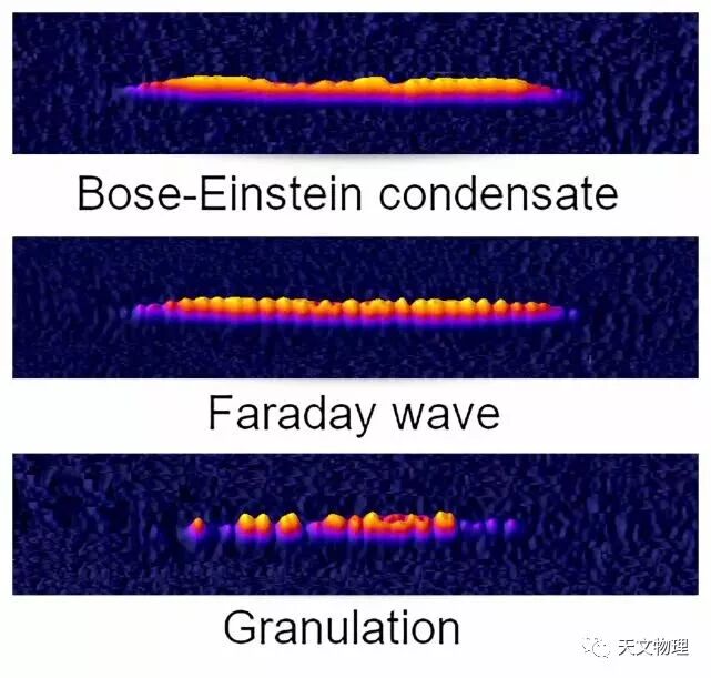 同样的量子系统可以产生如此不同的现象,这是很了不起的。这些状态之间的关系可以让我们知道很多关于复杂量子多体现象的知识。这项研究是与奥地利维也纳理工大学(TU Wien)和巴西圣保罗大学的物理学家合作进行。这些实验印证了迈克尔•法拉第(Michael Faraday) 1831年的一项发现。 博科园-科学科普:法拉第发现,在以特定临界频率垂直振动的桶中,液体表面会产生波纹。这种模式被称为法拉第波,类似于鼓首和振动板上产生的共振模式。为了研究法拉第波,研究小组将BECs限制在一维线性波导中,得到了雪茄形状的BEC。