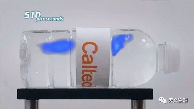 博科园-科学科普:在最终的视频中,当激光从左到右穿过屏幕时,光子在牛奶中以蓝色的模糊条纹清晰地划过。牛奶分子帮助散射激光束中的光子,类似于宇宙尘埃云散射来自其他看不见的恒星光。加州理工学院博士后王鹏(音)在新视频中演示了这款相机,据他说,光在大约2000皮秒(200万分之一秒)的时间内穿过瓶子的长度。