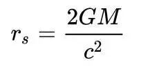 式中,Rs为天体的“史瓦西半径”,G为万有引力常数,M为天体的质量,c为光速。